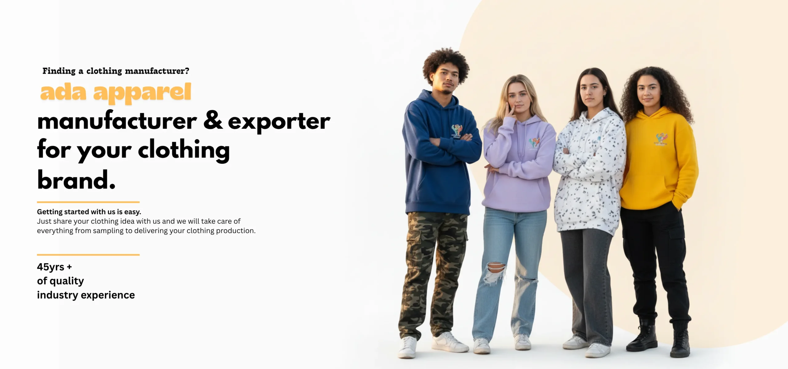 Ada Apparel manufactures a wide range of high-quality clothing, from trendy tops and bottoms to stylish dresses, activewear, footwear, and accessories. Each product is crafted with attention to detail, comfort, and style.